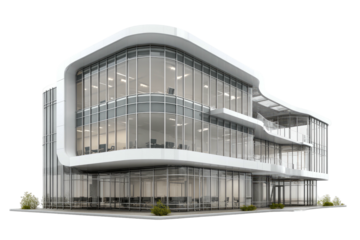 Modern, curved glass building with white trim