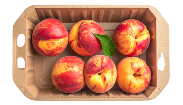 Ripe peach, blush of red, orange, yellow, fuzz detail, isolated