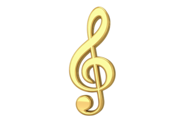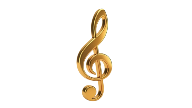 Isolated golden treble clef stands alone, symbol of musical notation and orchestral instruments