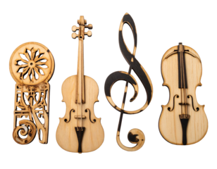 Wooden musical instruments and treble clef on black