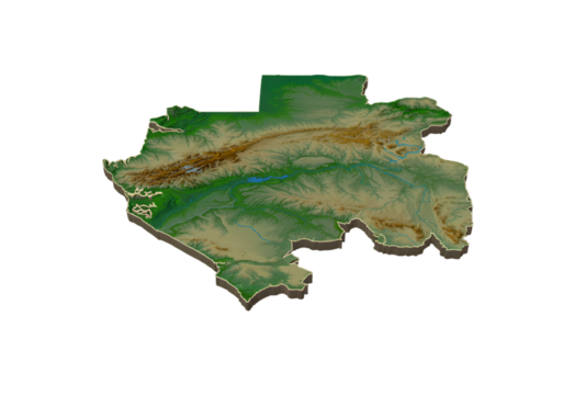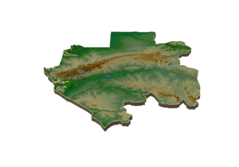 3D Illustration of Gabon Map Showing Terrain and Relief Features on Isolated Transparent Background