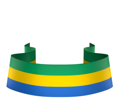Waving ribbon with blue, yellow, and green stripes reflecting gabon flag colors, a symbol of national pride