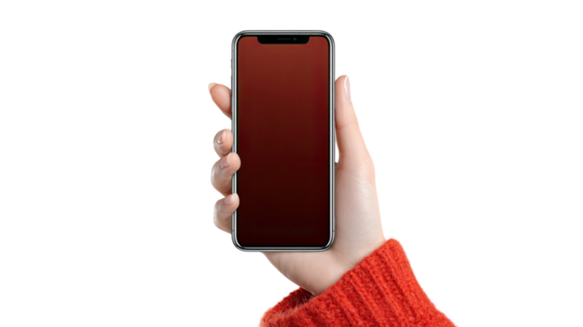 Closeup of woman hand holding smartphone, modern mobile device technology communication gadget illustration on white background
