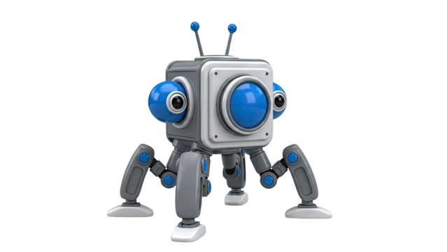 Cute Four-Legged Robot with Blue Eyes and Antennas