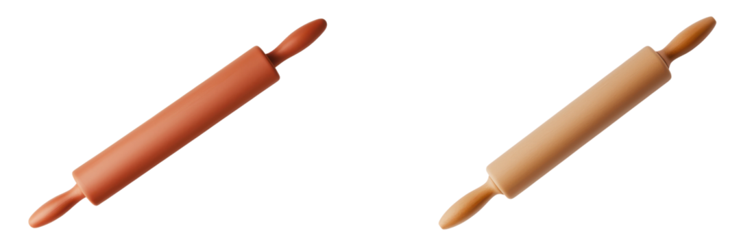 Two wooden rolling pins, one dark and one light, perfect for baking and cooking. transparent background
