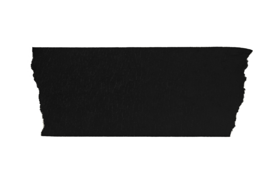 A piece of black paper tape on a blank background.