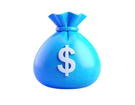 3D render of a blue money bag with white dollar sign, on black background