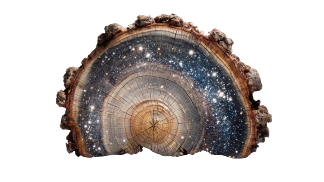 Galaxy inside of a tree trunk slice