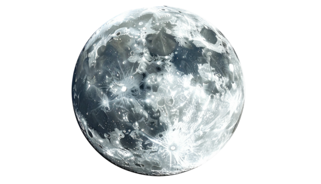Full moon glowing brightly with visible craters, illuminating the dark night sky on a transparent background