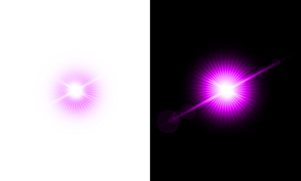Magenta starburst lens flare effect on black background glowing light explosion abstract bright burst radial abstract