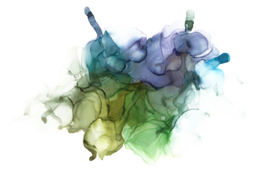 Abstract swirls of pink and peach ink dissolving in dark water creating ethereal cloud like forms