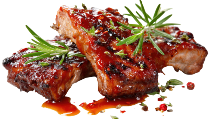 Grilled Korean Ribs Galbi with Smoky Glaze and Charred Edges Isolate on Transparent Background, cutout, png