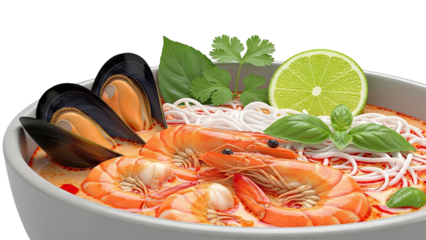 Seafood Noodle Soup with Shrimp, Mussels, Lime, and Herbs
