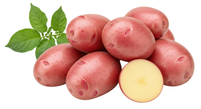 Isolated Red Potatoes with leaf