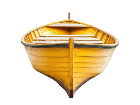 Vintage Yellow Wooden Rowboat: A Classic Nautical Vessel for Calm Waters