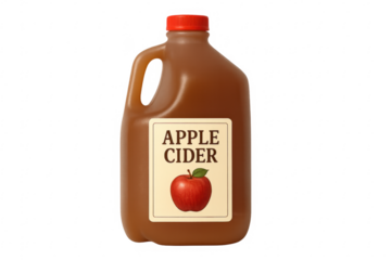 Plastic gallon jug of apple cider on transparent background