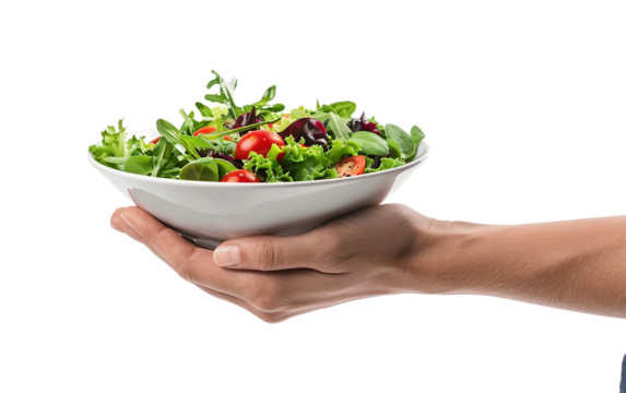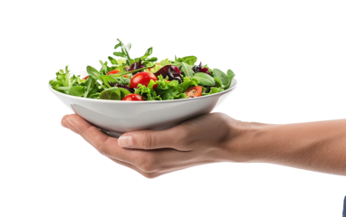 Hand Holding an Isolated Bowl of Fresh Salad Isolated on Transparent Background PNG.