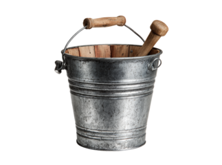 Galvanized metal bucket with handles on black background, cut out