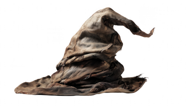An old, tattered magic hat, set against a white background, png, transparent
