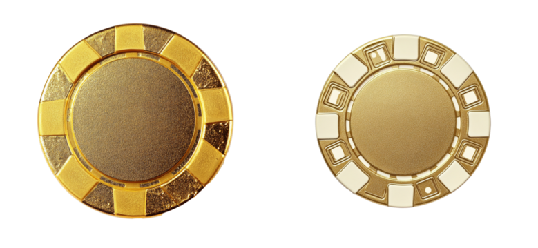 Two poker chips, gold, ivory, gambling accessory, luxurious, cut out transparent