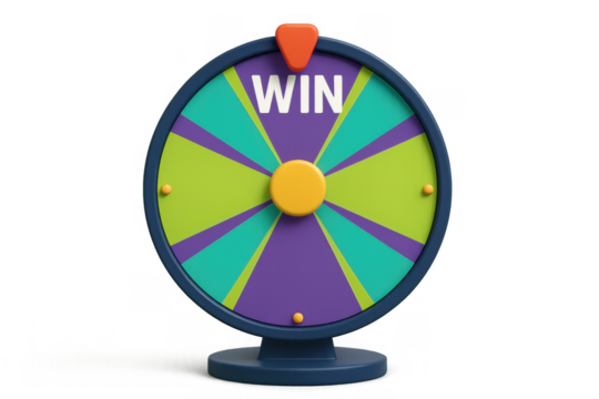 Prize wheel with win segment showing, indicating luck and opportunity. Interactive game, transparent background