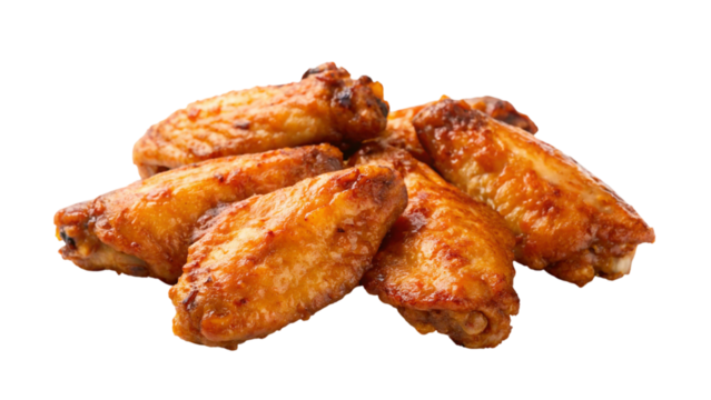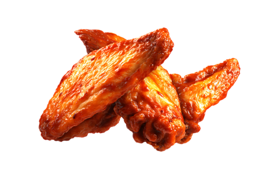 Crispy, saucy buffalo chicken wings isolated on white background, perfect for appetizer or game day snack