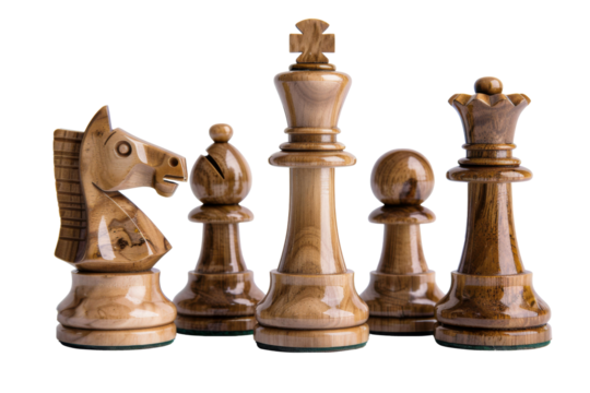 Classic wooden white queen chess piece standing on transparent background, representing strategy, power, and victory in the game