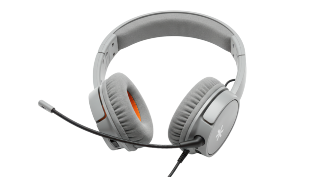 Isolated virtual reality headset with white and black design on a black background in high resolution on transparent background