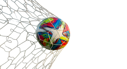 A vibrant soccer ball hitting the back of the net a moment of victory in a game with a black