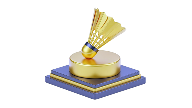 Golden Badminton Shuttlecock Trophy on Pedestal