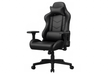Isolated Black Gaming Chair with Red Accents on Transparent Checkered Background - PNG Format