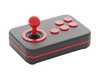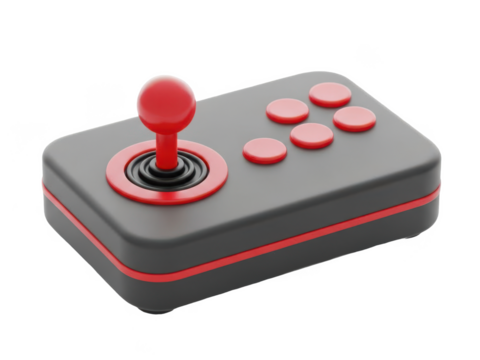 3d rendering of a sleek gray and red game controller with joystick and buttons, perfect for gaming enthusiasts and professionals, isolated on transparent background