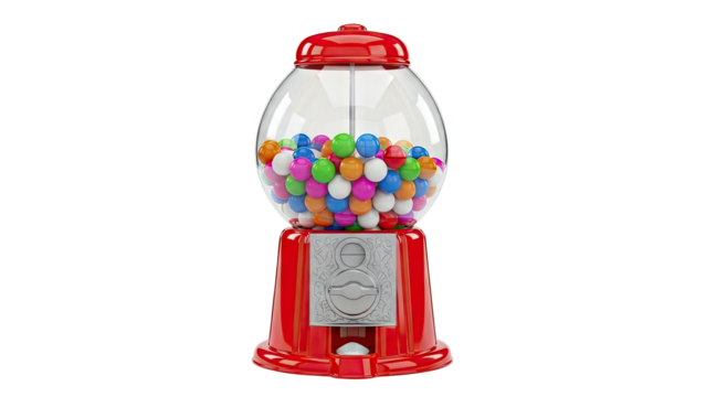 Red gumball machine dispenser isolated on transparent background