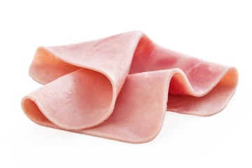Piece of ham is sliced into three pieces, isolated