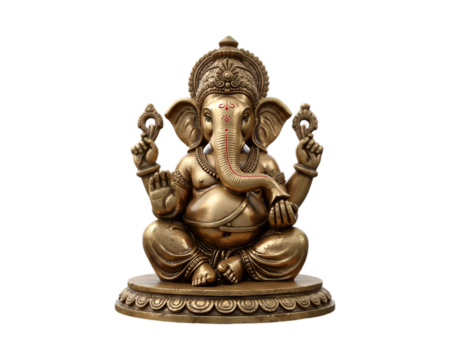 Indian god Ganesha with elephant head. Divine Hindu lord of luck, wisdom, isolated on a transparent or white background.