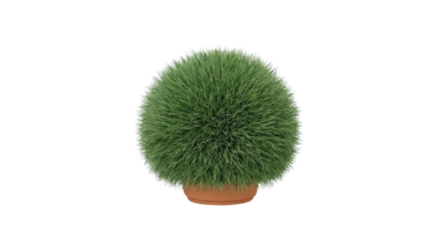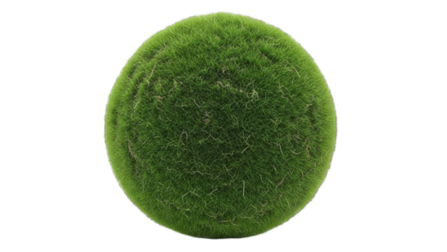 spherical clump of vibrant green grass with detailed texture, cutout, PNG isolated on white or transparent background