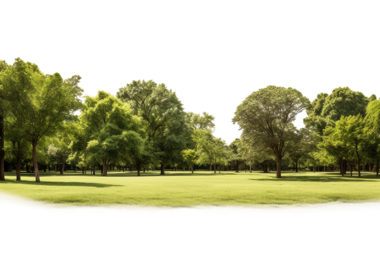 Serene Park with Trees and Benches Isolated on Transparent Background