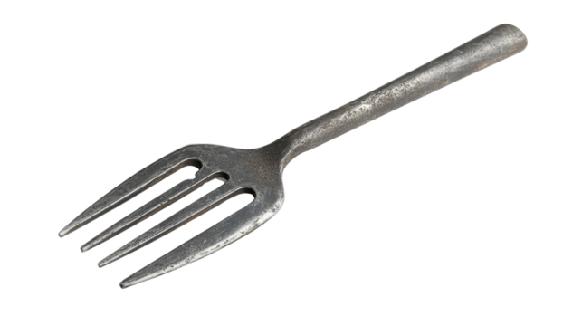 Close-up of a sturdy hand garden fork isolated on transparent background