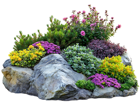 Colorful rock garden flower arrangement isolated on transparent background