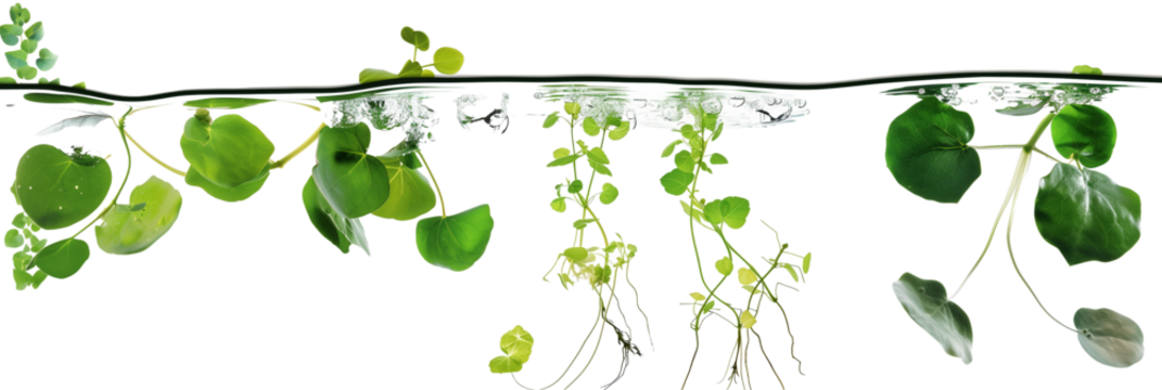 set of aquatic creepers with leaves floating on water surfaces, isolated on transparent background