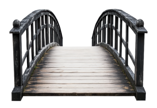 Wooden footbridge in a tranquil setting, cut out - stock png.