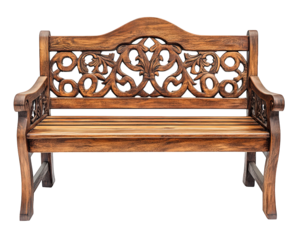 wooden garden bench with intricate carvings, perfect for outdoor relaxation. Its elegant design adds charm to any garden or patio setting, inviting comfort and style