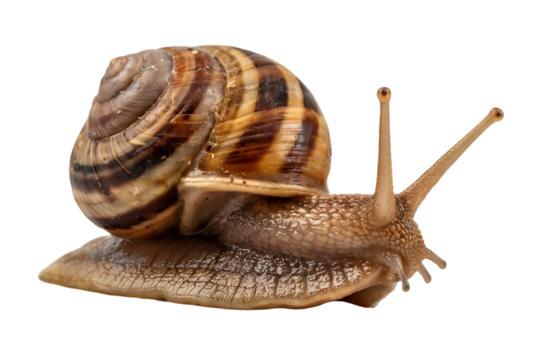 A garden snail with a detailed shell isolated on transparent background
