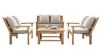 Outdoor Teak garden set isolated on transparent background