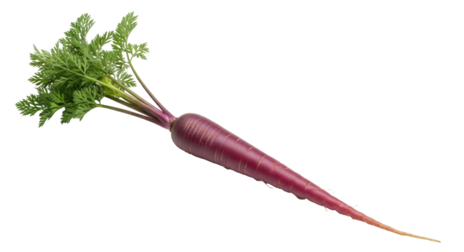 Isolated purple carrot, a fresh root vegetable with green top, edible root in healthy food theme