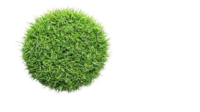 Round tuft of lush green grass isolated on a white background, perfect for gardening or landscaping themes.