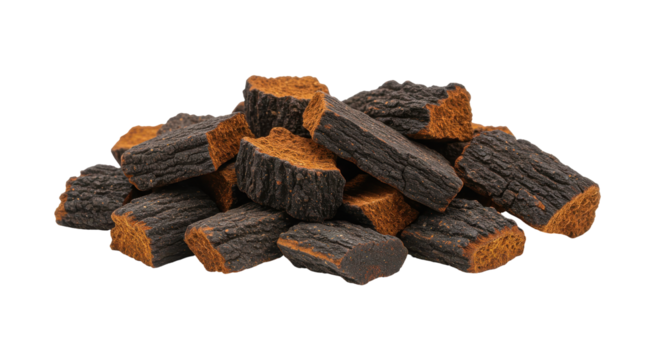 A pile of natural wooden logs showcasing rich textures and colors ideal for crafting isolated on white background