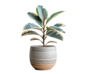 Variegated agave plant with green and yellow striped leaves, succulent texture, spiky tips and isolated on transparent background