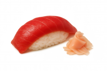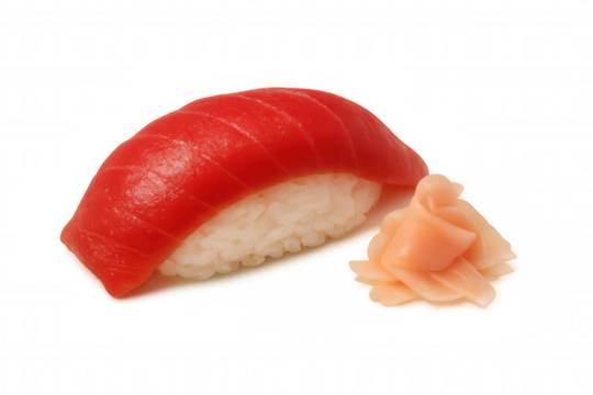 Fresh maguro nigiri sushi served with pickled ginger, isolated on transparent background, perfect for food and restaurant projects