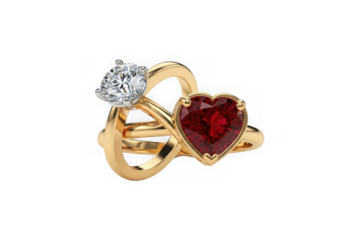 Gold ring with heart shaped garnet and diamond